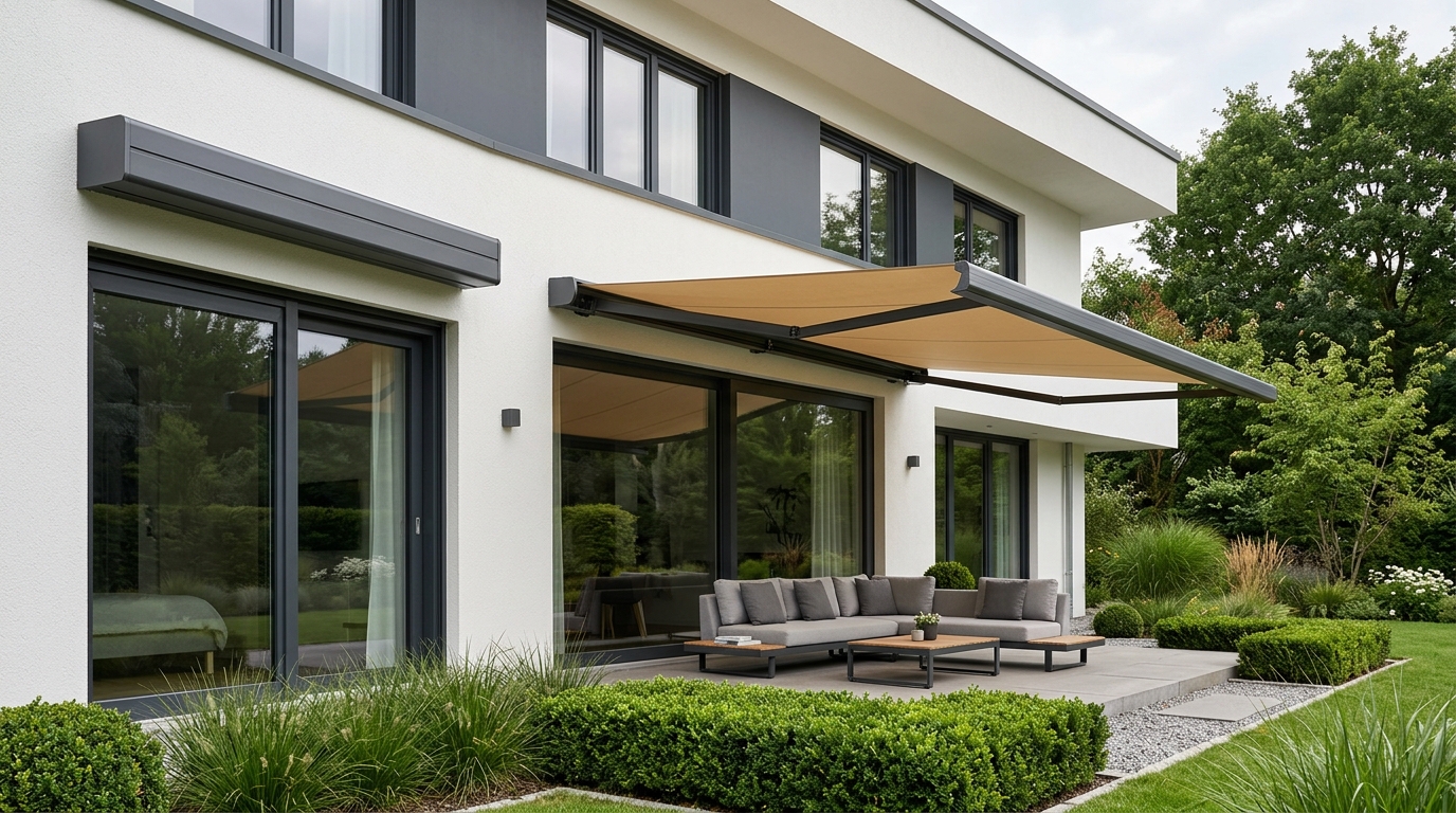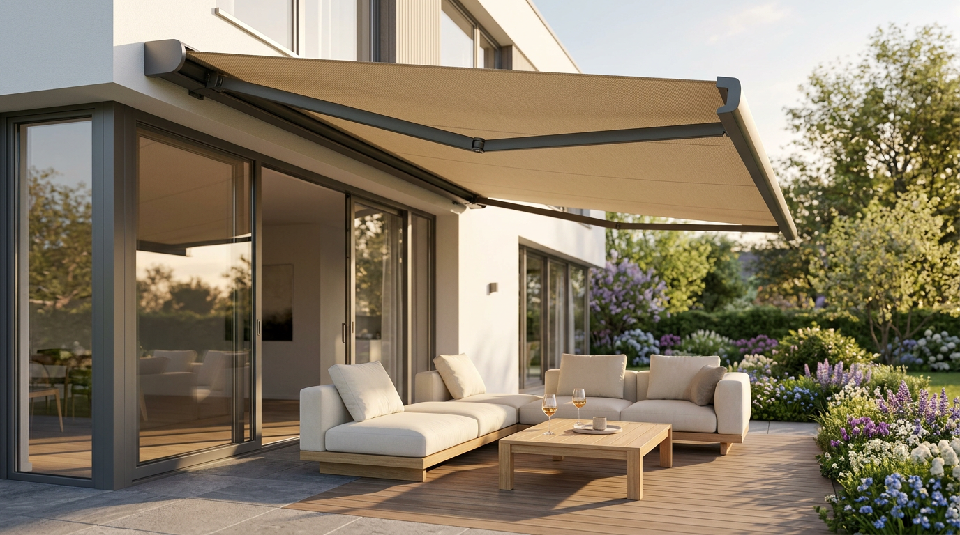 Zuverlässiger Schutz vor Sonne, Wind und leichtem Regen – für sorgenfreie Stunden auf der Terrasse.